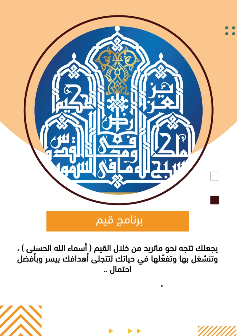 يجعلك تتجه نحو ماتريد من خلال القيم ( أسماء الله الحسنى ) ، وتنشغل بها وتفعّلها في حياتك لتتجلى أهدافك بيسر وبأفضل احتمال ..